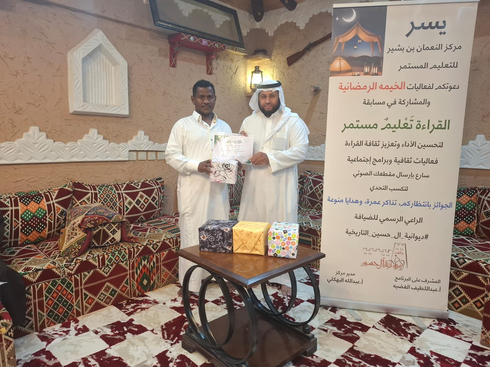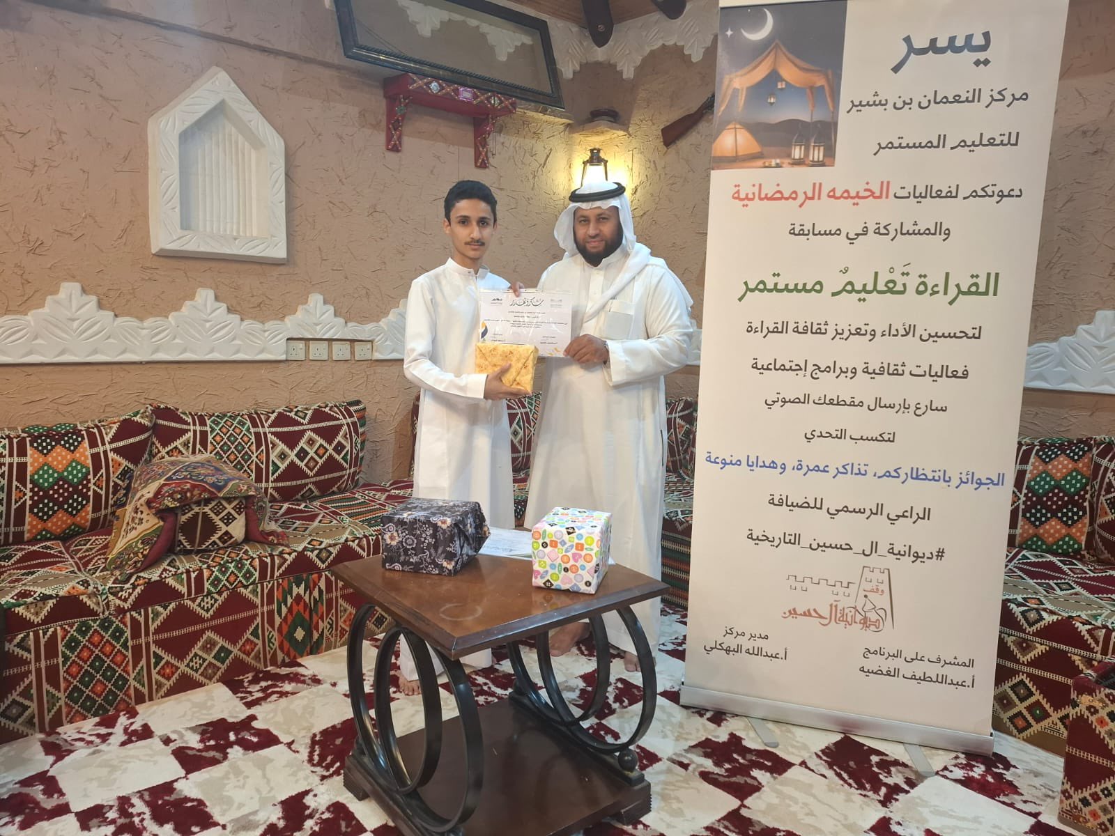 تشرفت وقف ديوانية ال حسين التاريخية باستضافة الحفل التكريمي للمشاركين في مسابقة القراءة تعليم مستمر لمركز النعمان بن بشير للتعليم المستمر