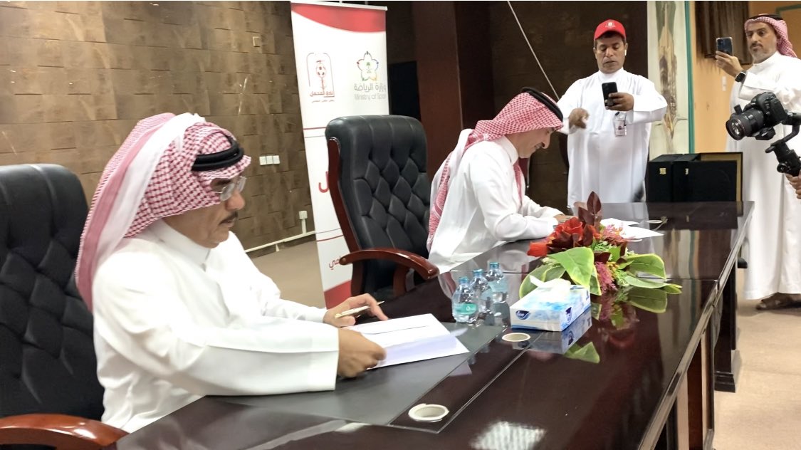 الأستاذ عبدالرحمن السويلم رئيس مجلس إدارة نادي المحمل الرياضي بمحافظة ثادق، لزيارة النادي وحضور مراسم توقيع اتفاقية شراكة مجتمعية بين نادي المحمل وديوانية آل حسين، الممثلة التاريخية في عميدها المستشار عبدالعزيز الحسين، وذلك في مناسبة مميزة تُقام برعاية كريمة من صاحب السمو الملكي الأمير فيصل بن سلطان بن ناصر آل سعود.